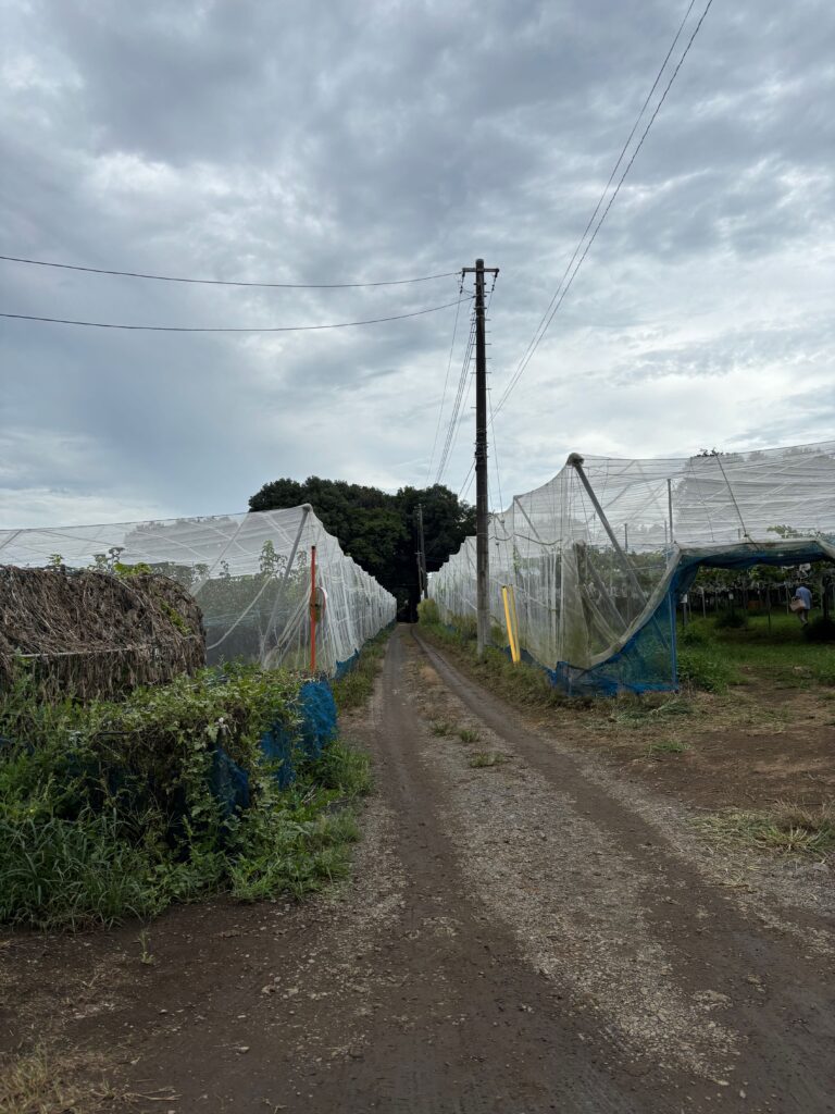 でも、林を抜けた瞬間、目の前に広がる梨畑とぶどう畑の風景に、きっと心が和むはずです。都心から車で約1時間という近さでありながら、まるで時間がゆっくり流れているような、懐かしくて穏やかな空気が流れています。